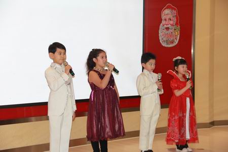 精彩的公开课结束后,家长和师生们来到报告厅,开展圣诞节和新年的欢庆活动。四位帅气、漂亮的主持人一出场便迎来了热烈的掌声: