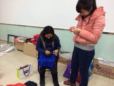 为了给孩子们精彩的表演锦上添花,老师们充分利用课余时间亲手设计、剪裁、缝制每一件演出服。多少个无休的周末、多少个不眠之夜,老师们为了孩子辛勤劳作着,热火朝天地忙碌着: