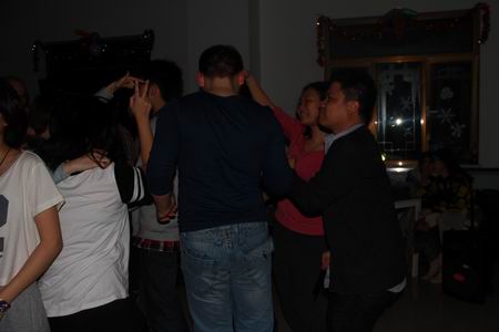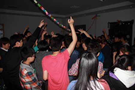 这一夜,师生们载歌载舞欢度圣诞佳节。这一夜,他们迸发着青春的活力,他们点燃了青春的激情;他们高唱着青春的赞歌,他们舞动着青春的脚步。呐喊声、欢呼声与歌声交织在一起,激情、热情与友情融汇在一起,此刻,心,不再有阻拦;爱,无条件相伴。因为:我们是一家人!