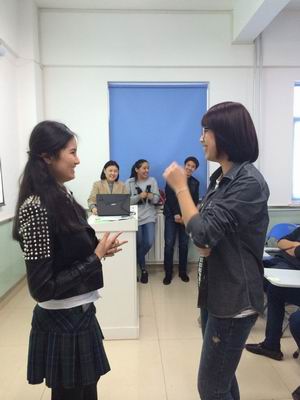 中级组的哈萨克斯坦学生詹贝克反应机敏,在紧张的气氛中发挥自己的肢体语言,用最简单的表达解决了难题。他淋漓尽致地展示了个人的智慧,有趣的表现引来阵阵笑声,当之无愧获得了小组第一名。