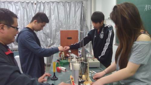 为了激发学生对物理学科的兴趣,调动学生的学习积极性,近日,国际汉语部高一班上了一堂不一样的物理课。在短短45分钟内,教师与学生一起,进行了一系列基础物理实验活动。