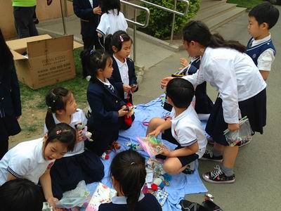 花样繁多的“商品”吸引了各个年级、各个部门的老师和同学们。围观的人越来越多,大家在这些“商品”中细细挑选着自己需要的;随着顾客的增多,小“老板”们的销售热情也越发高涨。低年级的孩子们用稚嫩的童音呼唤着,高年级的同学则拿着自己的物品“上门”服务。同学们耐心认真的样子,让人不禁为他们感到自豪;因为每一位同学都是在用自己的双手,传递着一份爱心,传递着一份温暖!