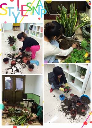 除了板报,班主任们还用心挑选了各式各样的花草来装饰教室。大家利用周末时间、不辞辛苦地亲自动手、亲自栽种,当了回真正的园丁。在慧心巧手、多才多艺的老师们的布置下,餐巾纸也化身为美丽的花盆,废弃的果篮亦变为充满情趣的装饰。教室里一派生机勃勃,绚烂温馨。