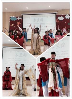 随着四名小主持人的闪亮上场,台下便响起了接连不断的热烈掌声。双证二年级的国学展示《木兰辞》,孩子们身着汉服,华彩益彰,大方端庄,出口成章;惟妙惟肖地演绎出花木兰女扮男装、替父从军的动人故事。而舞蹈《读唐诗》中,孩子们化身为可爱的小书童,挽起发髻,手执纸扇,口念诗词,舞出了千年的唐诗韵味和浓厚的文化积淀。