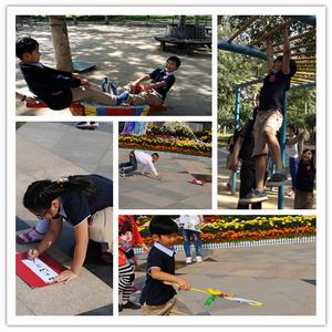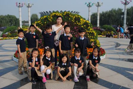 本次社会实践活动由国际部领导精心组织、周密计划、统一安排;教师们提前为外出活动作好了充分准备。29日上午八点半,师生们准时出发,乘着舒适的大巴奔赴目的地——世界花卉大观园。一路上,孩子们欢歌笑语,其乐无穷;不知不觉就到达了目的地。一下车,孩子们便被眼前的景象吸引了,整洁清新的世界花卉大观园令人心旷神怡。本次活动,上午首先进行了集体游戏比赛,孩子们踊跃参与,在丢手绢、背靠背接力、变换方式接力赛中积极表现,为所在团队争光添彩,获得了优异的名次和丰厚的奖品。中午,师生们席地而坐、悠闲野餐、畅聊趣事,十分温馨。下午,各班自由游园;漫步在林间小道,清新纯净的空气扑面而来,周围满是瑰丽奇绝的美景。蔬菜瓜果园、茗赏百花厅、热带植物馆、各国风情园等众多园林让人遐想连篇、赞叹不绝。