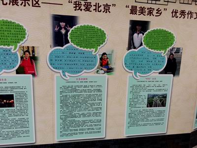 活动当天一大早,同学们怀着期待、兴奋的心情走进什刹海体校,一进门,就有学生欣喜地叫起来:“这不是陈老师吗?!她的照片怎么在这里?”没错,眼尖的同学一进门就在多元文化展示区“作文展示”板块,看到了我校在此次文化节作文大赛中获得最高奖项的作品及指导老师的宣传照片,高一班汉语好的同学一脸骄傲、手舞足蹈地给语言班的同学翻译着展示栏上的文字,逗得全场同学哈哈大笑,引来其他学校学生艳羡的眼神。随后,同学们在演播厅观看了本次多元文化节获奖文艺节目,享受了一场视听的盛宴。