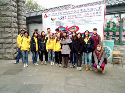 2014年10月31日上午,我校国际汉语部二十多名留学生在老师的带领下前往什刹海体校参加“2014北京市中小学多元文化节”文化体验活动。此次多元文化节以“多元文化交流,凝聚世界梦想”为主题,以中国文化为主,融合多元文化特色。活动由市教委主办、市国际教育交流中心和市中小学外籍学生教育研究会承办。北京拔萃双语学校、清华附中、四中等20余所中小学参加,有来自韩国、美国、俄罗斯、哈萨克斯坦等30余个国家的千余名外国中小学生参与其中。
