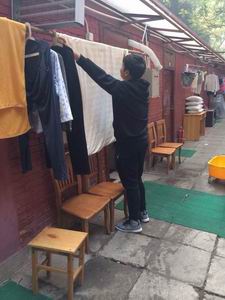李弘毅小组,由6个人组成,去的是梨园敬老院。这个敬老院的环境不如寸草春晖那么好,所以大家卷起袖子,拿起洁具,帮忙打扫卫生,做一些力所能及的事情。小组成员分工明确,有的擦玻璃,有的拖地,有的扫院子,大家都干得热火朝天、不亦乐乎……