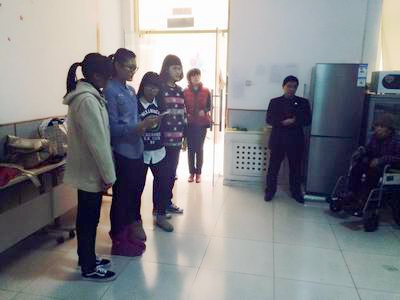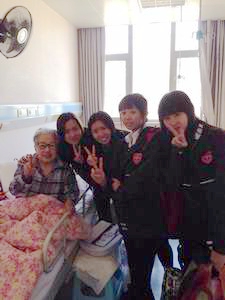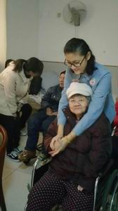 黄凯昭小组由6个人组成,他们去的是松仁堂临终关怀医院。这一组的孩子们活跃积极,有了他们,原本肃静沉闷的医院多了一份快乐。在那里,他们有的喂老人喝水,有的给老人按摩,有的陪他们聊天,房间里充满了欢声笑语。