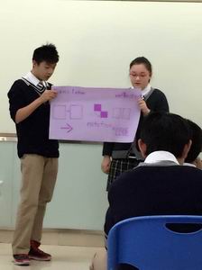 在中文数学上,池明月老师指导学生们提前分组做好相关内容的PPT,然后让每组的代表来向其他组讲解PPT的内容。很多同学在讲解时不仅把问题阐述得很清楚,而且仪态大方自然又不失幽默;让在座的每一个人赞叹不绝。