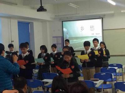 接下来的语文课,李琳婷老师带着同学们走进了余光中的《乡愁》世界,同学们伴着动人的音乐以不同形式的组合朗诵了这首诗,充满感情的诵读感动了所有的老师和家长,不少人心有戚戚、红了眼眶,甚至触动不已、潸然落泪。