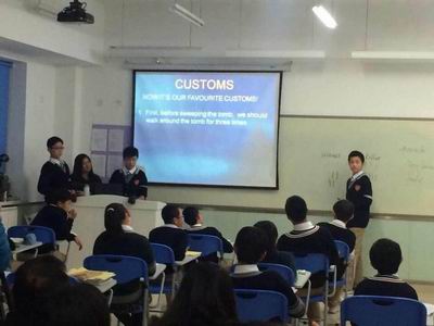 最后是班主任老师Nancy的英文课,同学们结合图片分组介绍并对比了东、西方国家的主要节日。在此过程中,孩子们不仅锻炼了英语语言能力,了解了西方的社会文化,还展示了自己的演讲和表达能力。尤其值得一提的是赵轩民和何轼同学,风趣幽默的介绍,引得大家笑声不断、连连称赞。