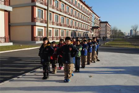 清晨六点五十分,孩子们排着整齐的队伍,喊着口号,走在去往食堂的路上,准备去迎接初升的太阳,开始美好的新一天!