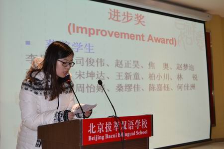12月11日下午,国际部全体师生在图书馆报告厅隆重举行了期中表彰大会。本次表彰大会由汉语部学生因卡和国高部学生赵泽龙主持,他们以流畅自如、纯正地道的中英文双语开场白拉开了大会的序幕。