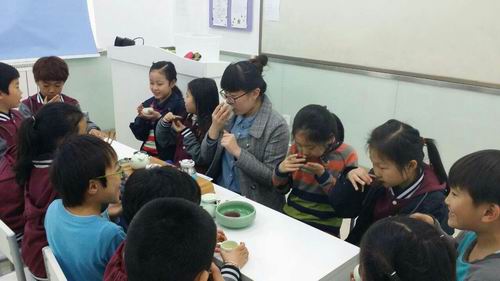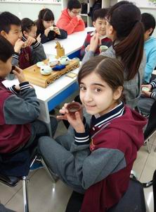 听说这学期的中国文化课涉及到茶艺,提前好几个星期,就有同学们忍不住了,纷纷迫切询问老师茶艺课什么时候开,会包括哪些内容……等到正式上课了,同学们坐得一个比一个端正,鸦雀无声,瞪大眼睛认真观看老师烹茶、制茶的情景,生怕漏掉某个细节。外国孩子们对茶艺充满了好奇与赞叹,中国孩子们则为自己的民族文化感到深深的自豪!