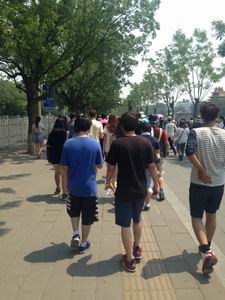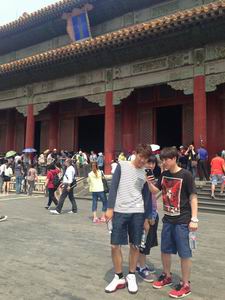 这一天北京的天气非常炎热,同学们的热情却随着温度高升。在老师的带领下,同学们经过人民英雄纪念碑,穿过天安门广场,最终来到了故宫。到了大门口,留学生们才真正的感受到什么叫人山人海;不过眼前气势宏伟的故宫还是强烈地吸引着大家在人群中有序地前行。进入故宫,宏伟的中国古代建筑就展现在眼前。红墙黄柱,琉璃金瓦,在阳光下熠熠生辉,展现着昔日皇朝的奢侈与辉煌。接下来大家游览了中和殿、保和殿、养心殿等精美的古代宫殿;最后来到了皇家园林——御花园。御花园中种植了上百种名贵的花草树木,绿树成荫;还矗立着一座名叫堆秀山的假山,山上有一座小凉亭,同学们坐在凉亭里休息乘凉,不禁感叹道:“老师,中国皇帝的家真不错!”
