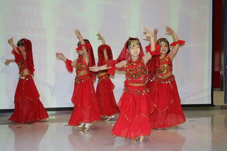 双证1(2)班的《唐诗新唱》中,孩子们化身为可爱的小书童,让古诗更加生动活泼;舞蹈俱乐部的小同学们则为大家带来了俏皮可爱的《爱剪纸的小丫蛋》,形象舞出了中国传统的剪纸文化,将演出带入了第一个高潮;而她们带来的另一个舞蹈《印度风情》,浓浓的异域风度则充分展现出了靓丽的“国际范儿”。