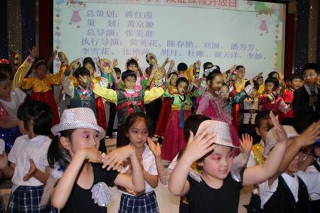 压轴的韩国舞蹈从服装到造型,从女孩子们的鼓声到男孩子们的刀舞,无不充分体现出浓郁的民族特色,引得观众们纷纷站起身来观看、不停拍照。随着它的结束,本次庆“六一”才艺展示活动也圆满落下了帷幕。回顾这次活动,既展现了孩子们全面发展、健康活泼、积极向上的风采,又是我部全面推进素质教育、中西结合教育方式的成果体现。相信在全体师生与家长的共同努力下,孩子们一定会从拔萃这个小小的舞台走向更大的未来世界!