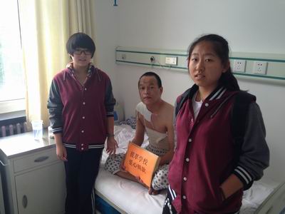 6月21日上午,我校国际部两位学生代表在老师的带领下前往北京市石景山区同心医院,亲切慰问遭遇车祸的田泰山;并将爱心义卖所得的捐款送到他手中,为他送去一份真挚的关心和慰问。
