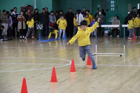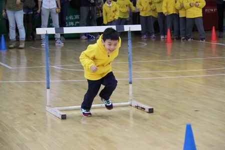 一个又一个班级排着整齐的队形,孩子们个个面带笑容,朝气蓬勃,展示了国际部学子的风采与活力。首先是活力四射的开场操“七彩阳光”,孩子们动作变化多端,却整齐划一,让人看了赞不绝口。接下来的啦啦操更是舞出了精彩,如行云流水;老师们亲手制作的拉花在孩子们手中不停翻滚,不断变换着的造型也赢得了在场家长热烈的掌声。热身之后,趣味运动会正式开始。学生障碍赛、亲子接力赛,一个个项目令整个赛场顿时沸腾起来,加油助威声此起彼伏。孩子们和家长们都鼓足了劲,一个个如矫兔般飞离起点,像利箭般冲向终点,为自己、为家庭、为集体争取一份荣誉。这股激情让旁观的观众也不住地呐喊助威,为之兴奋……