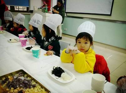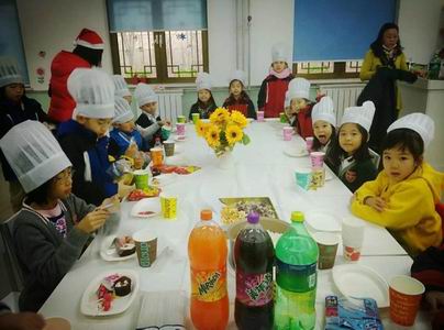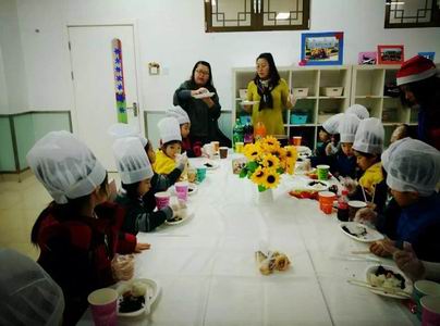 圣诞树、气球、彩带、灯饰、礼物……每一个教室都披上了节日的盛装,每一个班级都洋溢着温馨愉悦的氛围。在老师们的指导和带领下,孩子们有的学习捏饭团;有的忙着做饼干;有的巧思妙想、制作水果沙拉和创意拼盘;有的分成小组、或做面饼、或摆食材、或撒芝士,分工明确,制作营养丰富而美味的Pizza……当香气四溢、可爱小巧的米饭团制作成功,当丰富多彩、吸引眼球的圣诞饼干摆放成盘,当色味俱佳、料正味浓的披萨饼端出烤箱,所有孩子们都忍不住欢呼起来!不仅津津有味地享受着自己的劳动成果,孩子们还不忘与其他同学和老师们共同分享节日的欢乐,将亲手制作的美食送进教师办公室,送入同学和朋友们的手中。美味散发在教学楼的每个角落,小厨师们真是棒极了!