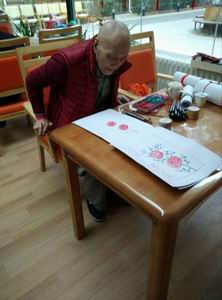 接着我们来到老人的活动区域,宽敞明亮的落地窗给老人们展示了户外最好的景象。老人们有的聚在一起打牌娱乐,有的弹钢琴,有的画水墨画。我们的到来当然也给老人们增添了许多乐趣,同学们有的观看爷爷奶奶们打麻将,有的给老人们唱歌、说笑话,有的与老人聊天、倾听老人们的心声……