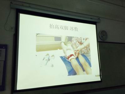讲座一开始,主讲老师播放了《安全讲座》PPT,让同学们直观的了解了一些安全知识。随后,老师给同学们详细讲解了各类应急救护知识,还现场给同学们做出了示范,并让同学们互相配合、自己动手试试。比如常用的止血方法,包括指压止血法、加压包扎法、止血带止血法(布带绞紧止血法、橡皮管止血法)等;同学们亲自试验了以后,印象更加深刻了。