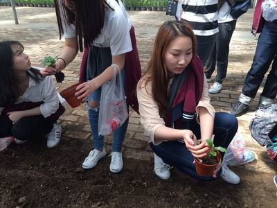 21日上午8点,全体师生整装待发、前往此行的第一站——北京世界花卉大观园。在蓝天和阳光的映衬下,草更绿,花更艳,笑脸更灿烂。同学们兴致勃勃地边走边看,记忆着各种各样的植物名称,感叹着大自然的神奇和万物的朝气,并不时地拍照留影。大家井然有序地参观了每一个展区,并按时来到花卉栽培区,在工作人员的协助下,亲手栽种出一棵棵绿色的植株。同学们认真专注的表情,让身边的人感受到生命的美好、青春的可贵。最后,大家将代表着盎然春意和勃勃生机的绿苗栽进花盆、随身携带,把希望和春天带回学校。