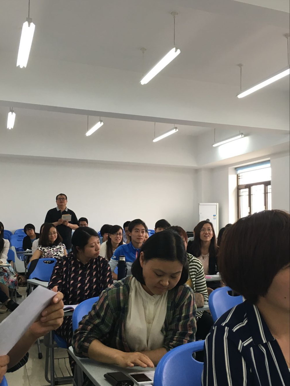 “会议中,我感触最深的,还是蒋校的组织调动能力,自己远远望着,钦佩得很,想想自己在课堂上,耐心不够,发火的次数也不在少数,相较之下,虽然会议的环境中面对的不是真正的“学生”,但蒋校平和的心态是我应该吸收借鉴的。”