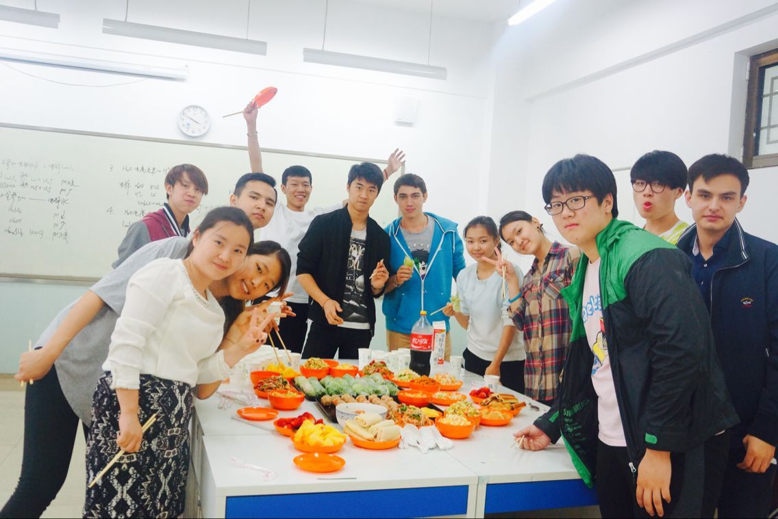 紧张的大学考试已告一段落, 为了纪念在拔萃国际部学习生活的日子及留下更多更美好的回忆,毕业班的同学自发组织起了结业Party!可能是因为这是毕业前最后一次一起做饭,每个学生都非常认真。有些需要的食材在学校附近买不到,他们就趁周末到大型超市自行购买,然后带回学校。走读的学生还从家里提来了一大罐配好的调味汁和妈妈腌制的小菜,在准备的过程中他们分工有序、互相帮助,还彼此借鉴烹饪的技巧和经验,将不同国家的饮食作比较、相结合,希望做出受到各国人民欢迎的新菜品。看着这些“小厨师们”为了烹制出美味佳肴在教室里忙得不亦乐乎,老师们被深深地感动。他们不仅给我们带来了美食,还带来了幸福和浓浓的师生情。