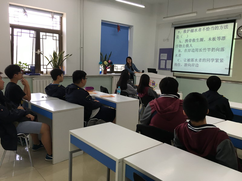 为了进一步贯彻落实学部的“安全宣传教育月”活动,促使同学们树立安全思想,加强安全防范意识,提高安全防范能力,掌握危急时避难求生的各种技能,5月13日拔萃双语学校英语初中部利用班会课的时间在教室进行了一场精彩的安全知识竞赛。