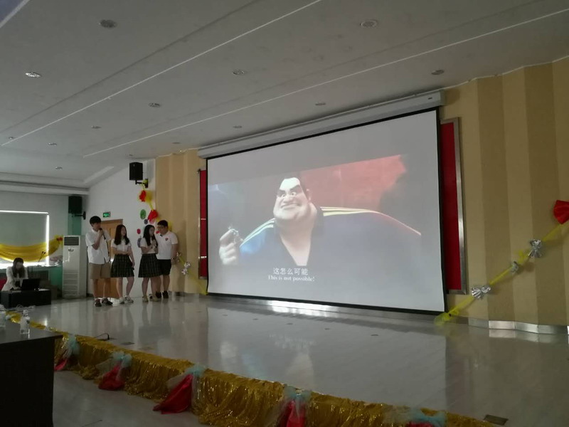 当天下午,国际初中的各位同学早早来到了报告厅进行赛前的准备工作,随后嘉宾和评委老师陆续到场,下午1点,英语戏剧比赛拉开了帷幕。比赛分为配音和戏剧两部分。比赛过程中,各班同学均表现得非常出色,充分地展示出了各班积极向上的精神风貌。配音比赛中,每位同学配音的角色都十分逗趣,不论是声音憨态可掬的“功夫熊猫”,还是机灵古怪的“小怪兽”,都令场下的同学深入其境,感叹不已。其中双证初二班的《神偷奶爸》配音十分精彩,尤其是其中“老爸”的配音十分精彩,也正是他们出色的表演,让他们赢得了配音比赛的第一名。