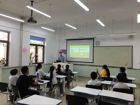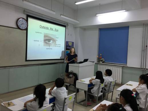 上课铃声还没有响,家长们就已经坐在教室里等待,各年级的中教和外教采用多样的教学手段及多媒体技术将枯燥乏味的学习带入了轻松愉悦的氛围中,这让孩子们在有限的时间里快速掌握了所学内容。孟开慧老师的语文课——《只有一个地球》利用多媒体课件让学生更加直观地认识了地球,并通过朗读和语句分析的形式使同学们进一步体会到使用说明方法写事物的好处。