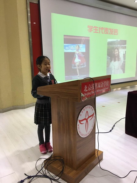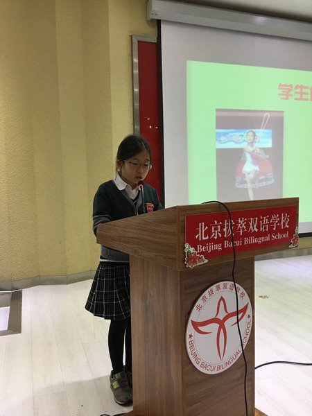 接下来,双二(1)班唐锦心同学作为模范学生代表发言,别看她小小年纪