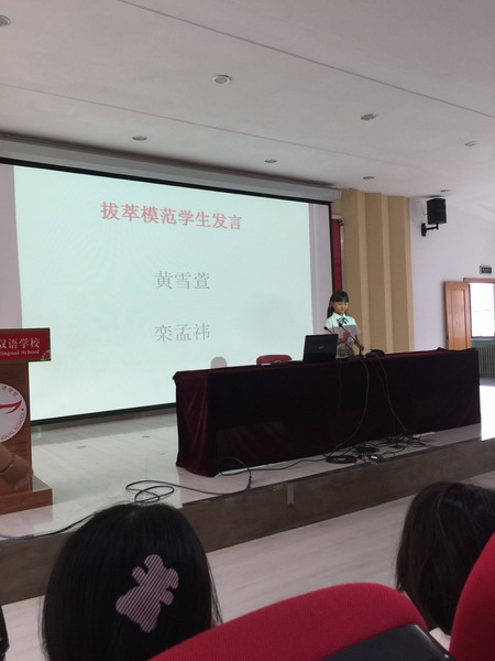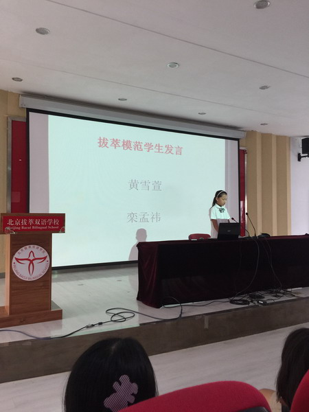 典礼第一项为上学期荣获“模范奖”、“博爱奖”的学生颁发奖状及奖学金。随后,由两位模范生黄雪萱、栾孟祎同学作为学生代表上台发言,她们不仅和大家分享了自己平日的学习经验,还对低年级的学弟学妹们给予了鼓励。最后,小学部黄主任发表了热情洋溢的新学期致辞,她肯定了过去一学期里国际部小学全体师生所作出的努力与贡献,同时也对新学期向同学们的表现提出了希望,并鼓励同学们再攀高峰!