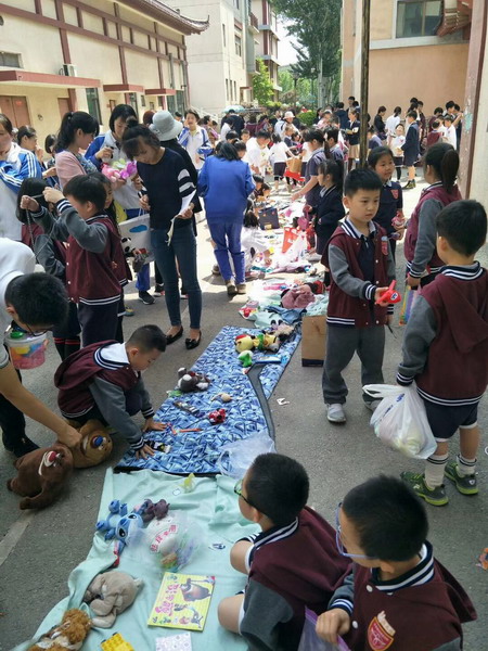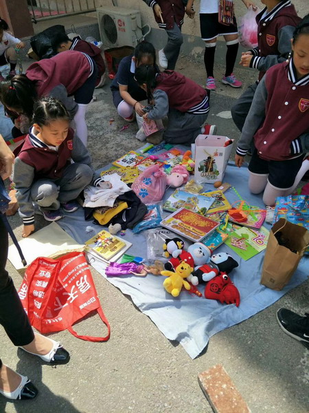 滴水成渊,聚沙成塔,在火热的气氛下义卖品一件件地在减少,而爱心款数却一点点地增多,不知不觉一小时过去了,义卖活动也接近了尾声,同学们虽然心有成就却意犹未尽。带着不舍和兴奋,他们收起了自己的小摊位,并将整理好的义卖款和收集的250kg旧衣物通过“飞蚂蚁”公益组织捐献给了贫困山区的孩子们。