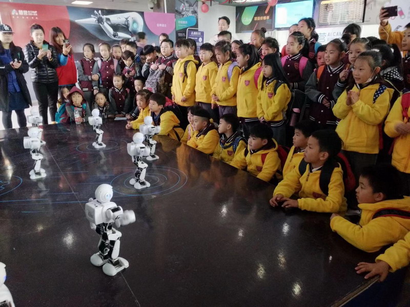 第一站,孩子们聆听了机器人科普大讲座,了解了机器人的发展史;随后观看了机器人表演:整齐的列队、灵活的舞姿给全体小朋友带 来无限欢乐和感动,仿似让我们重温了一遍春晚的节目《冲向巅峰》,上演了现实版的“星球广场舞”!其中“阿尔法”跳舞机器人着实博人眼球,它是服务型人形智能机器人,不但会聊天、会跳舞、会瑜伽,还会打拳击、耍太极、诵古诗,这让酷爱高科技的孩子们耳目一新、自叹不如。当“阿尔法”声情并茂地朗诵了古诗时,孩子们不由得竖起了大拇指!据介绍登台表演的这款“阿尔法”机器人已超越了欧美日韩的同类型机器人。