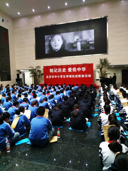 一踏入纪念馆,“中国人民抗日纪念馆”几个铜字映入眼帘,倍感庄严肃穆。在工作人员的指引下,我们集体学习了国歌创作的历程,对中国的重大意义,在庄重的氛围中,我们齐唱国歌,学唱《长城谣》,同学们响亮而又整齐的声音,似乎在宣告新时期的我们会接起历史的接力棒。