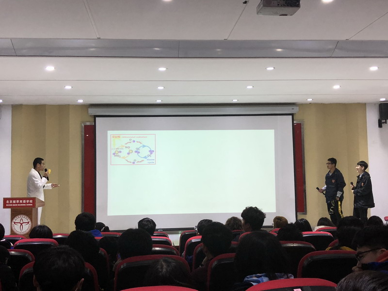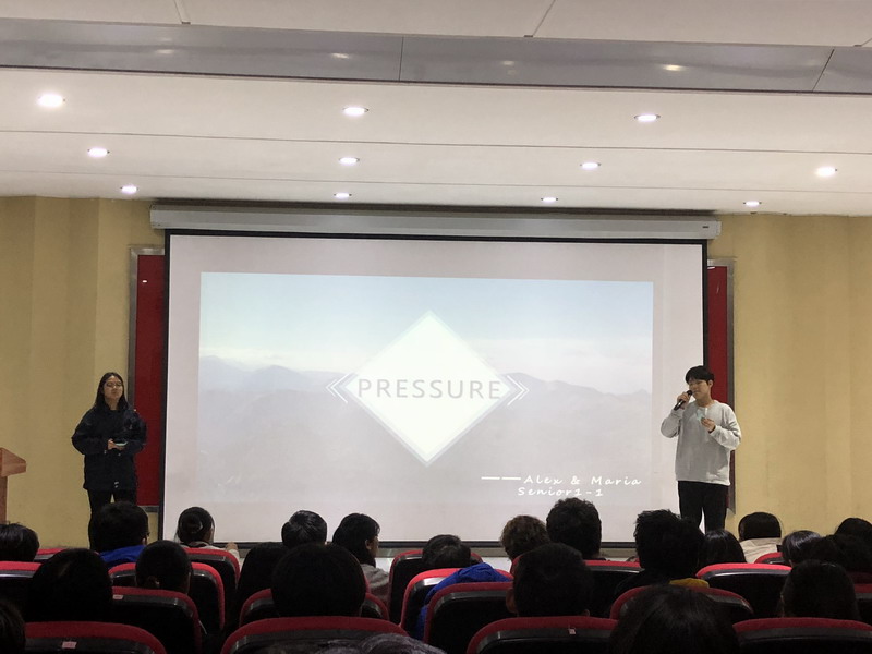 本次活动由理科组老师指导定题,英语组老师校对语言,同学们积极踊跃报名后在每班挑选出两个优秀小组参加最终的比赛。比赛首先以SACE班优秀PPT作品展示开头,展现了高三年级同学扎实的语言功底和成熟的展示技巧。随后,国际高中日语班学生展示了日语现场版电影配音,这让在场的同学们感受到了日语的魅力和他们在这门语言上的巨大进步。紧接着,高一高二年级进行了PPT展示,同学们拿出了自己最好的状态,用流利的英文介绍着自己展示的主题,他们不时与台下同学互动,气氛十分热烈。活动最后,国际高中部颁发了本学期球类赛及期中成绩的各种奖项,同学们纷纷受到了鼓舞,不时响起如雷的掌声。