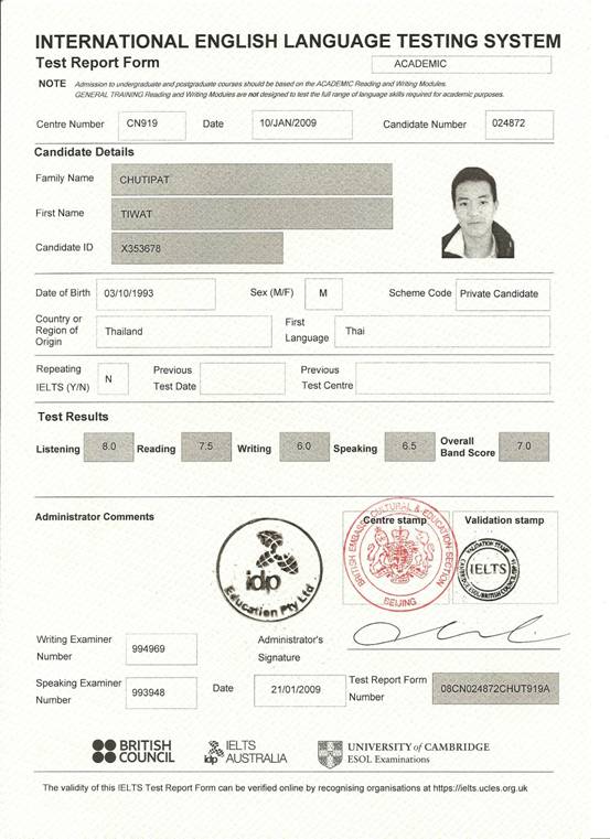继我校汉语部留学生HSK考试喜获大面积丰收后,我校英语课程部学生雅思考试再获佳绩。08年9月开始进入我校英语课程部学习的泰国学生TIWAT CHUTIPAT,于今年元月参加雅思考试,取得了7分的优异成绩,其中听力达到了8分(总分9分),为自己赢得了无须再读语言预科,就可以直接申请报考顶级世界名牌大学本科的资格,他在短短一学期里就取得如此好的好成绩,不仅是我校教师高标准、严要求和学生勤奋好学的结果,也充分说明了我校国际英文课程的合理性和英语课程教学的实力,这也使其他同学备受鼓舞。