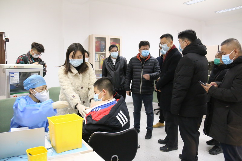 上级领导十分重视我校的新冠疫苗接种工作,区委常委、副区长暴剑亲临我校指导疫苗接种工作,平房地区办事处主任张昕,副主任刘建、陈先伟也随行汇报。领导们对我校有条不紊、安全有序、顺利高效的疫苗接种工作给予充分肯定,并要求我校要进一步总结经验,优化细化接种流程,提高接种效率,为后续第二、三针新冠疫苗接种工作打好基础。