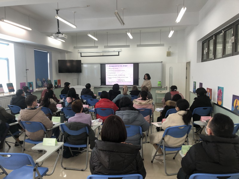 双语部蒋校长首先祝各位外教和中教在新的一年里虎虎生威,虎年大吉。接下来她以特有的轻松幽默方式讲述了新学期的安排:如SACE和CAIE全球考试,公开课和集体教研。尤其是讲到双语部一年一度的教学成果展示时,她诚恳地邀请教师们也要参与其中,跟学生们一起展示才艺,享受舞台。