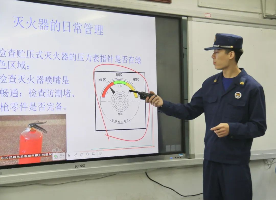 很多时间我们存在侥幸心理、麻痹大意、不懂如何如何利用消防知识进行自救等问题,对此,教官以触目惊心的人员伤亡数据和发生的事故给大家敲响消防安全警钟,并就日常生活中面对隐患时的具体处理办法做了解说,还当场讲解灭火器及安全锤的使用方法。