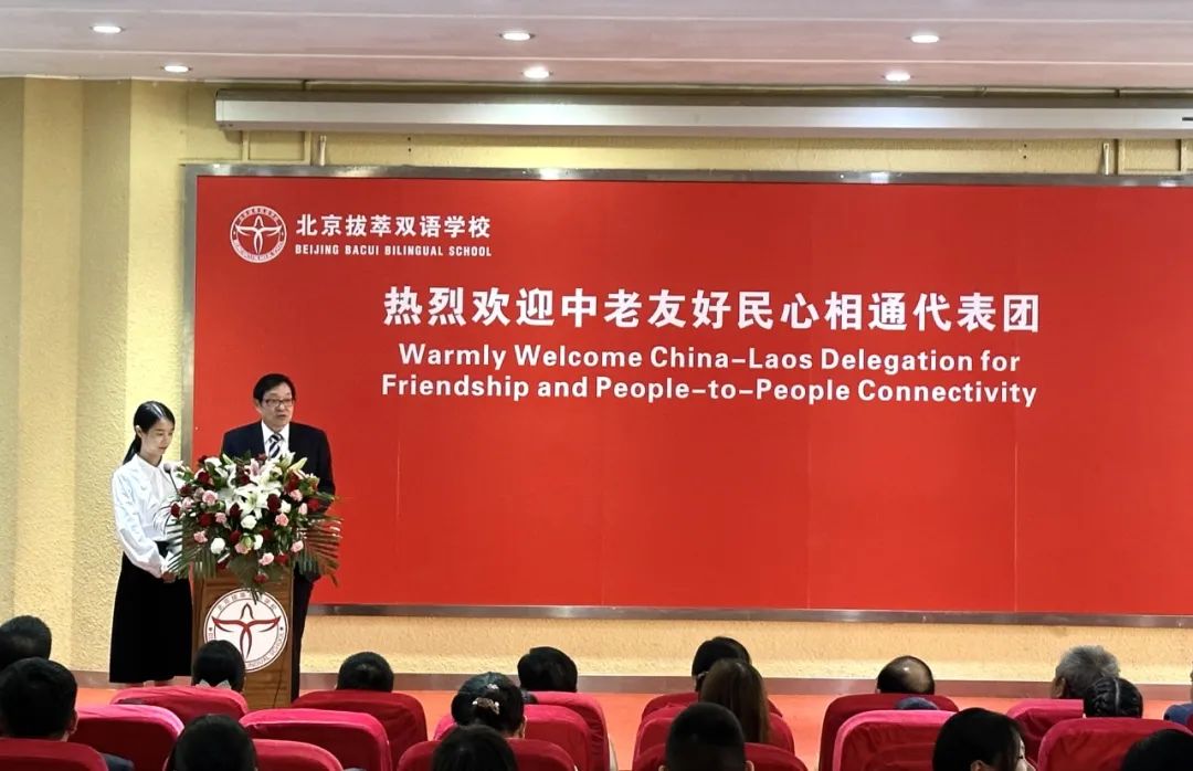 北京拔萃双语学校校长万小平在致词中,对中老友好民心相通代表团的到来表示热烈欢迎。他表示,国之交在民相亲,民相亲在心相通。代表团来访交流必将进一步加深我校师生与老挝师生的彼此了解,促进两国文化交流,增进两国友谊。