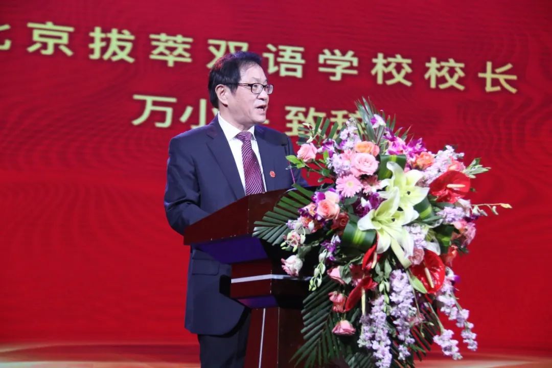 中国红十字会总会事业发展中心主任、北京拔萃双语学校创办人江丹在致辞中首先感谢了学校全体教职员工、拔萃校友和一直关心、鼎力支持北京拔萃的各位领导、各界朋友。她说,经过二十年不懈努力,学校荣获“中国青年志愿者北京拔萃双语学校培训基地”、“北京市优秀民办学校”、“北京民办教育社会公益评选优秀单位”等称号,这些成绩的取得来之不易。江丹表示,学校将始终以习近平新时代中国特色社会主义思想为指引,全面贯彻党的二十大精神,进一步落实习近平总书记对教育工作的殷切嘱托,以立德树人、凝聚人心、完善人格为育人目标,坚持红十字办学特色,将拔萃学校打造为民办标杆名校,更好的为培育社会主义建设者和接班人发挥作用。