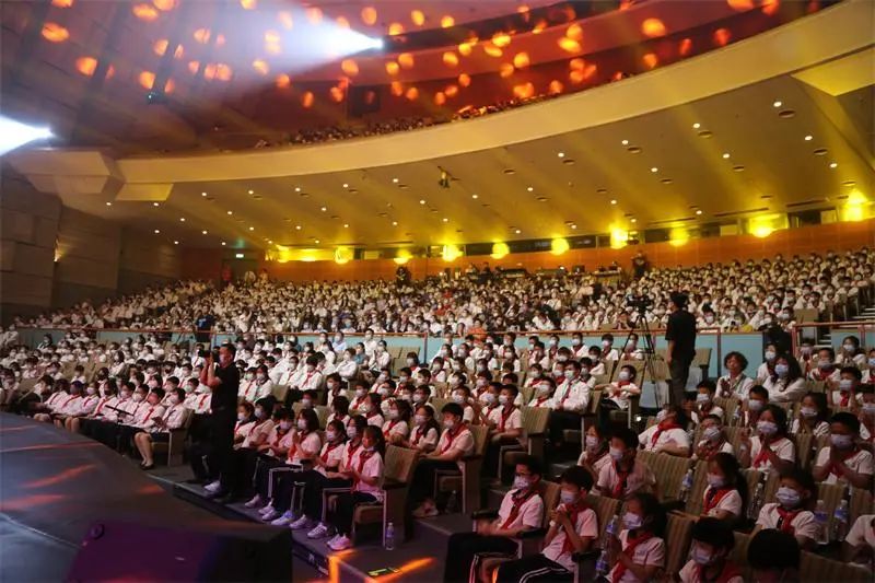 孩子们为领导嘉宾们戴上红领巾,并合影留恋