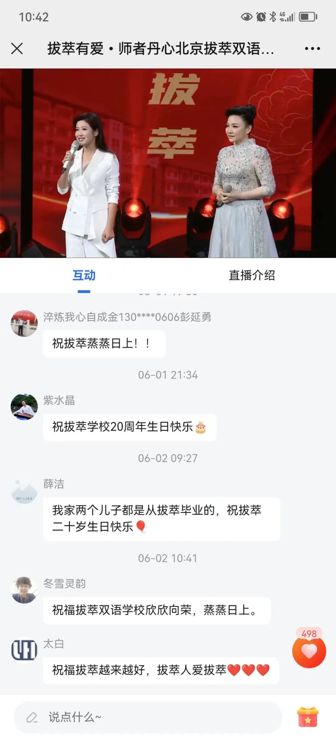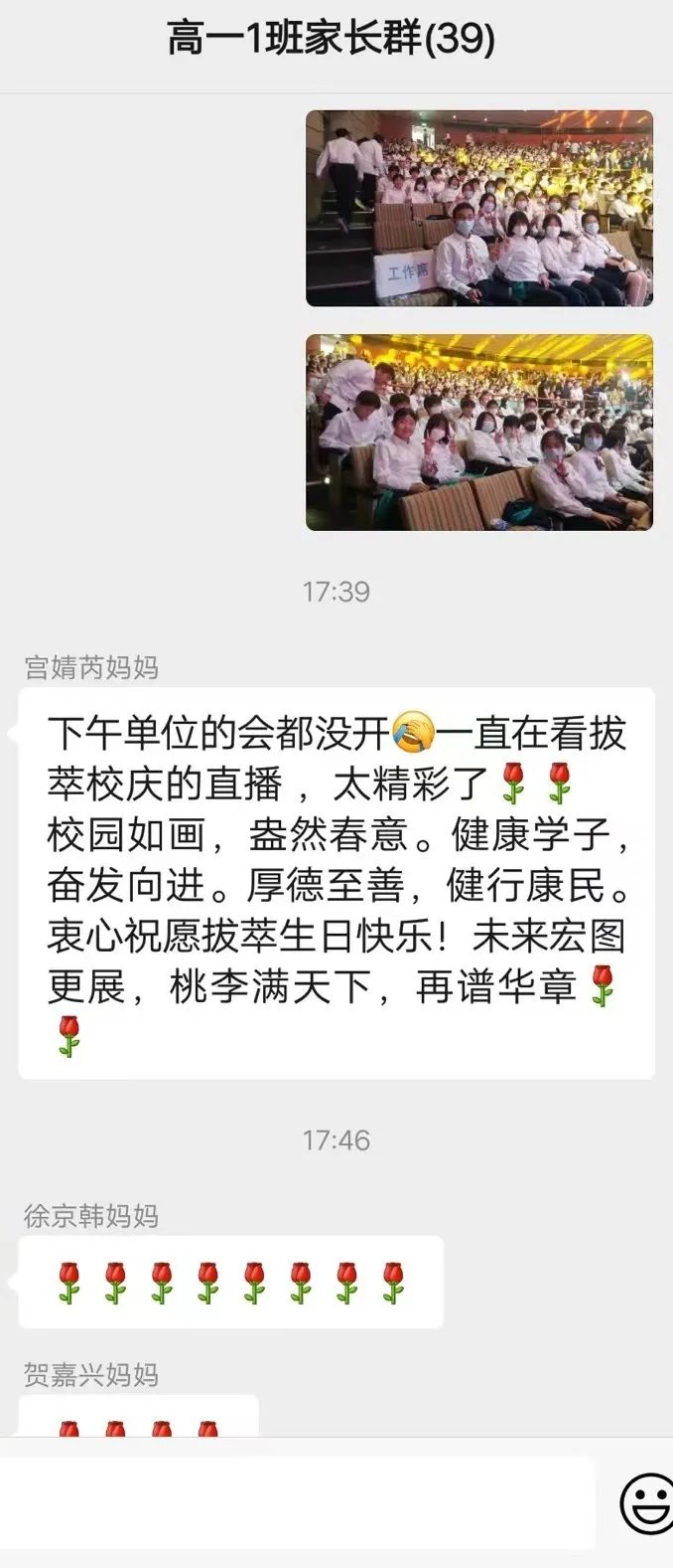 北京拔萃双语学校名誉校长江泽玲为学校发来寄语,她希望学校继续引领学生成长,帮助学生树立远大理想,坚定爱国情怀;希望学校继续坚持红十字办学特色;希望学校继续扎根中华传统文化,培养具有中华底蕴和国际视野的高素质人才。