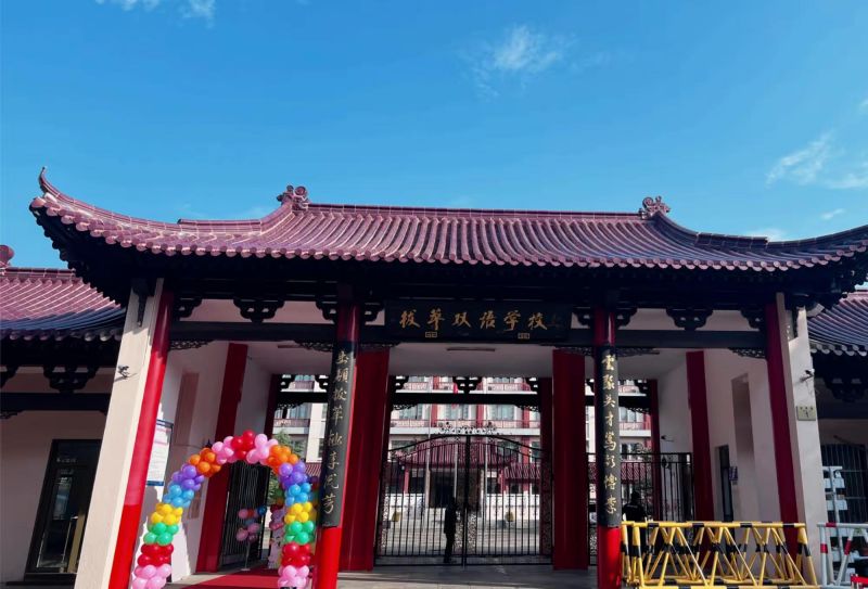穿过彩虹门,一条鲜红的地毯引领着新生前行,两旁是教师团队热情的笑脸和鼓励的目光。老师们轻轻牵起孩子们的小手,引导他们走过红毯,仿佛预示着孩子们即将踏上的是一段光明而辉煌的旅程。古朴典雅的校园建筑,在秋日的阳光下更显庄重与温馨,让每一个孩子都能感受到家一般的温暖。