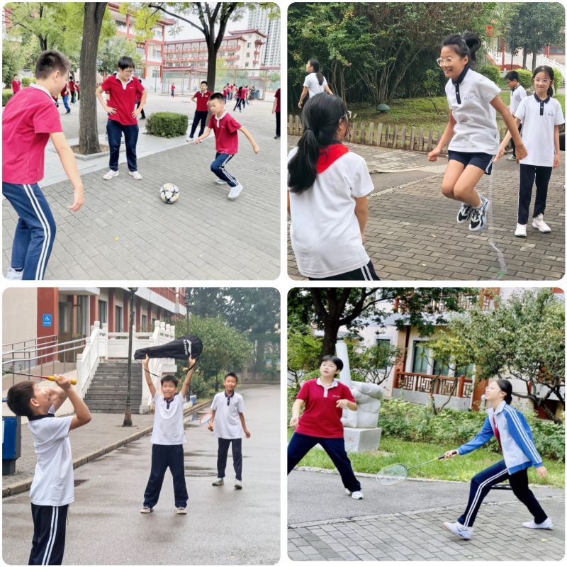 中年级的学生们则转战篮球场、足球场,尽情挥洒汗水,享受运动的快乐;