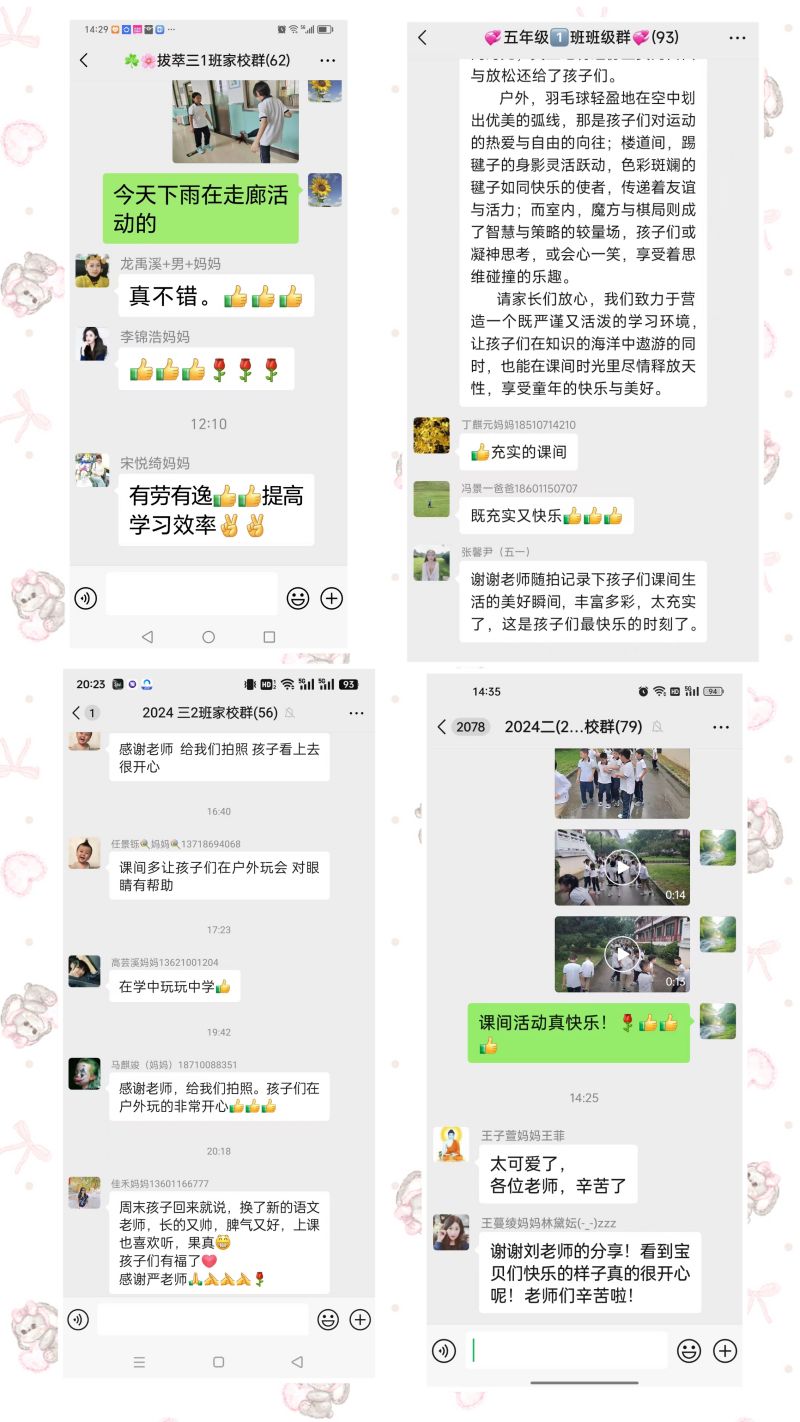 大课间活动深受学生喜爱,家长赞誉有加,称其促进身心健康,培养兴趣与团队协作能力,是素质教育佳例,赢得社会广泛好评,成教育改革新亮点。
